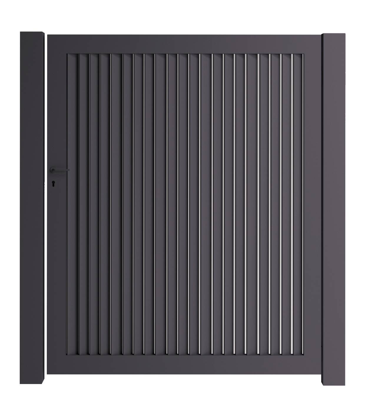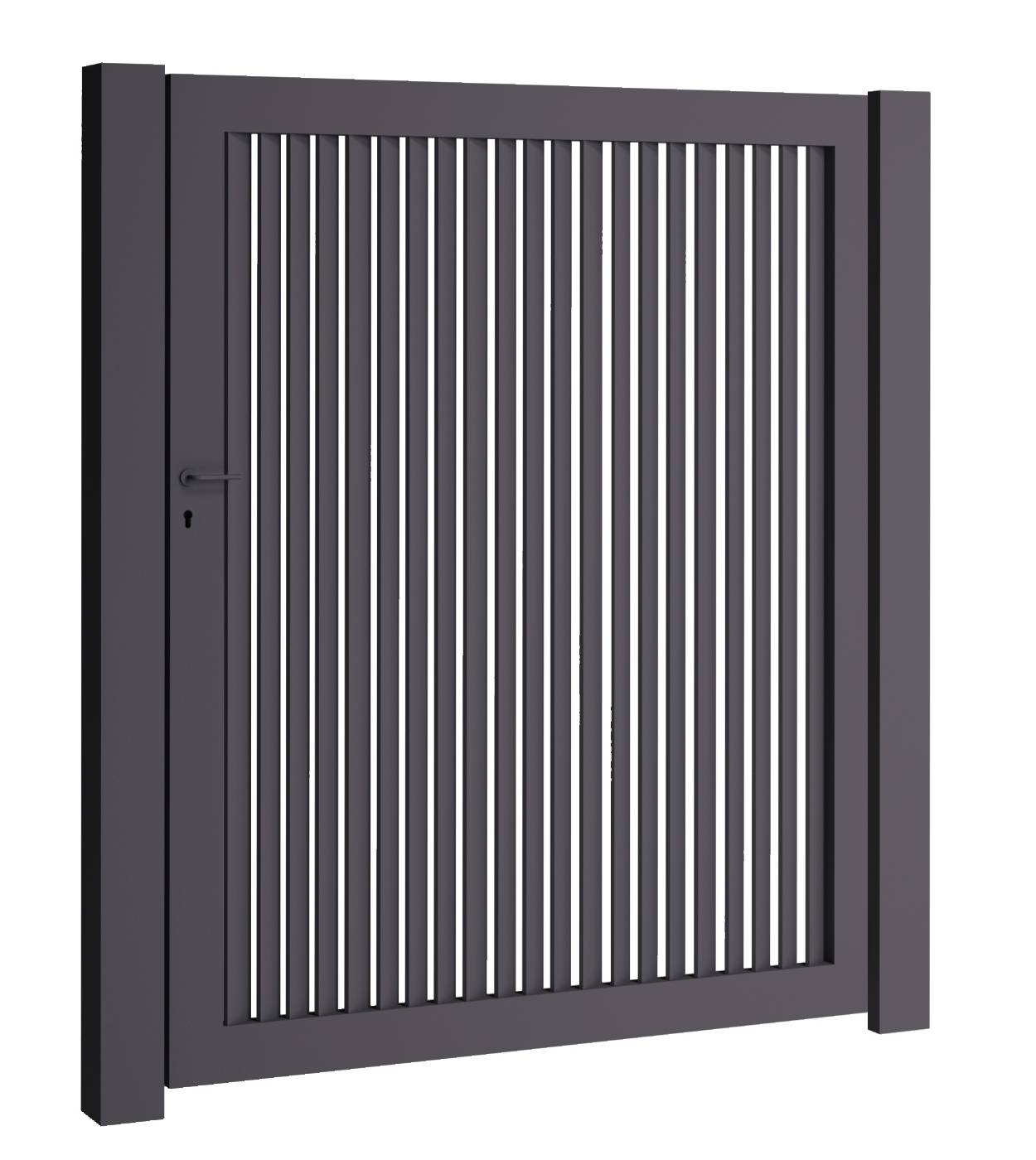 De Darwin enkele draaipoort combineert een strak, eigentijds design met fijne verticale invulling die een heel lichte doorkijk toelaten. Zo geniet je van een open en luchtige uitstraling zonder aan privacy in te boeten. Verkrijgbaar in diverse kleuren en afmetingen, perfect passend bij jouw stijl en ruimte.